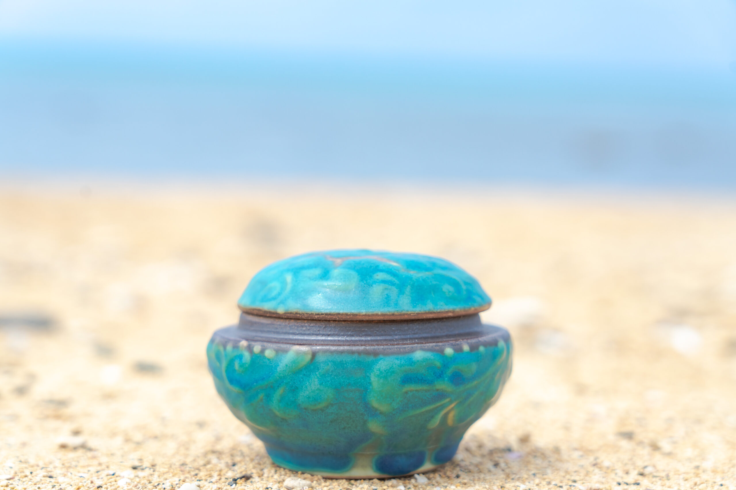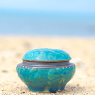 散骨すれば2度とご遺骨は戻って来ません。そのため、分骨をお勧めしております。沖縄の焼き物作家にオリジナルで作っていただいた「やちむん分骨壷」をご用意しています。