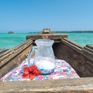 GreenFlashでは、通常のエンジンボートだけでなく、この琉球サバニ船での海洋散骨をすることができます。